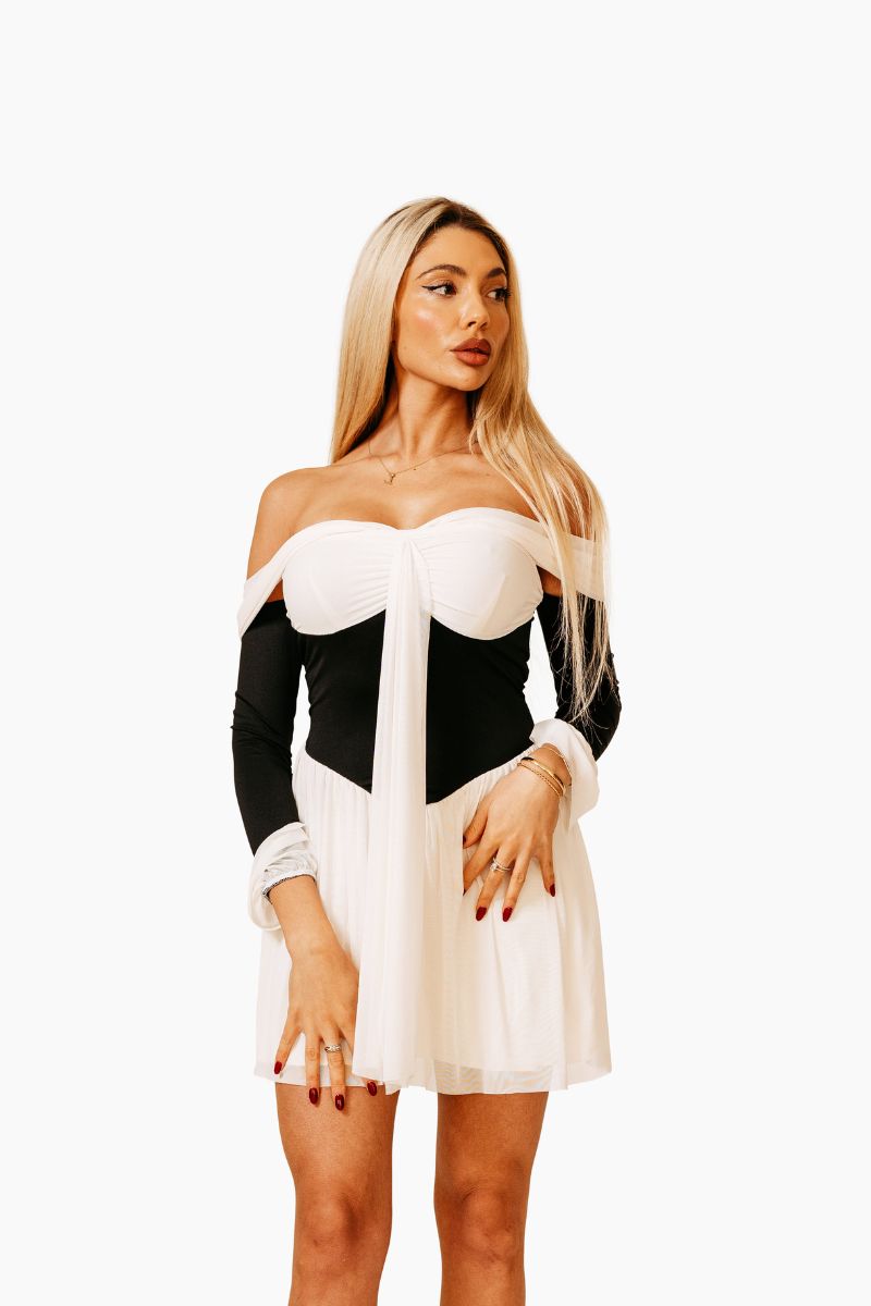 Schulterfreies Kleid mit Schleife