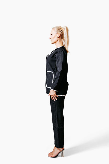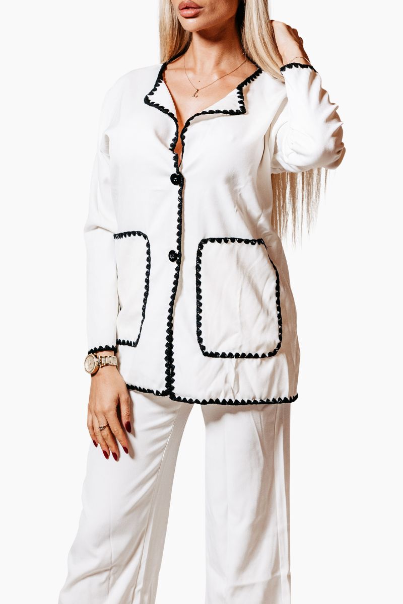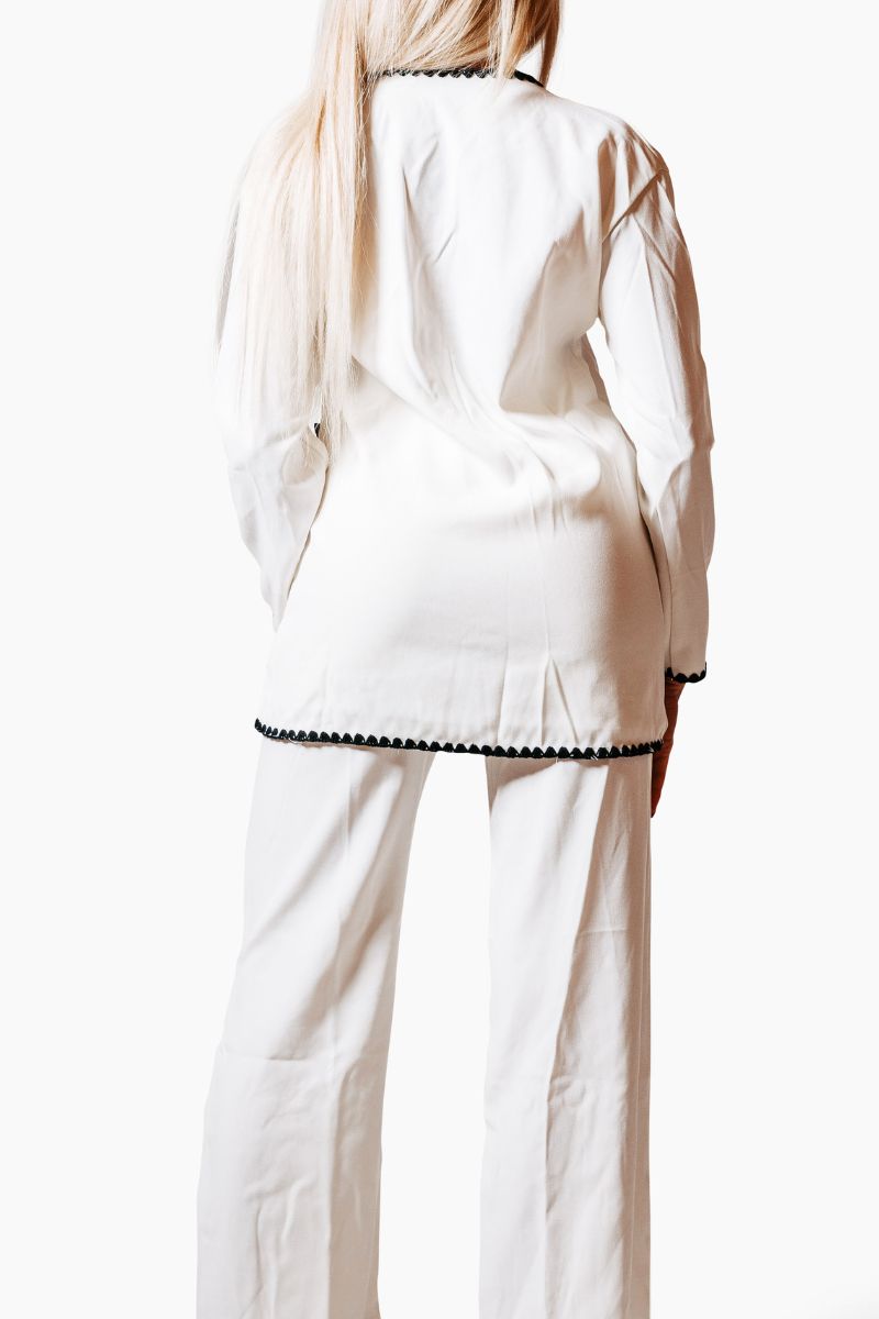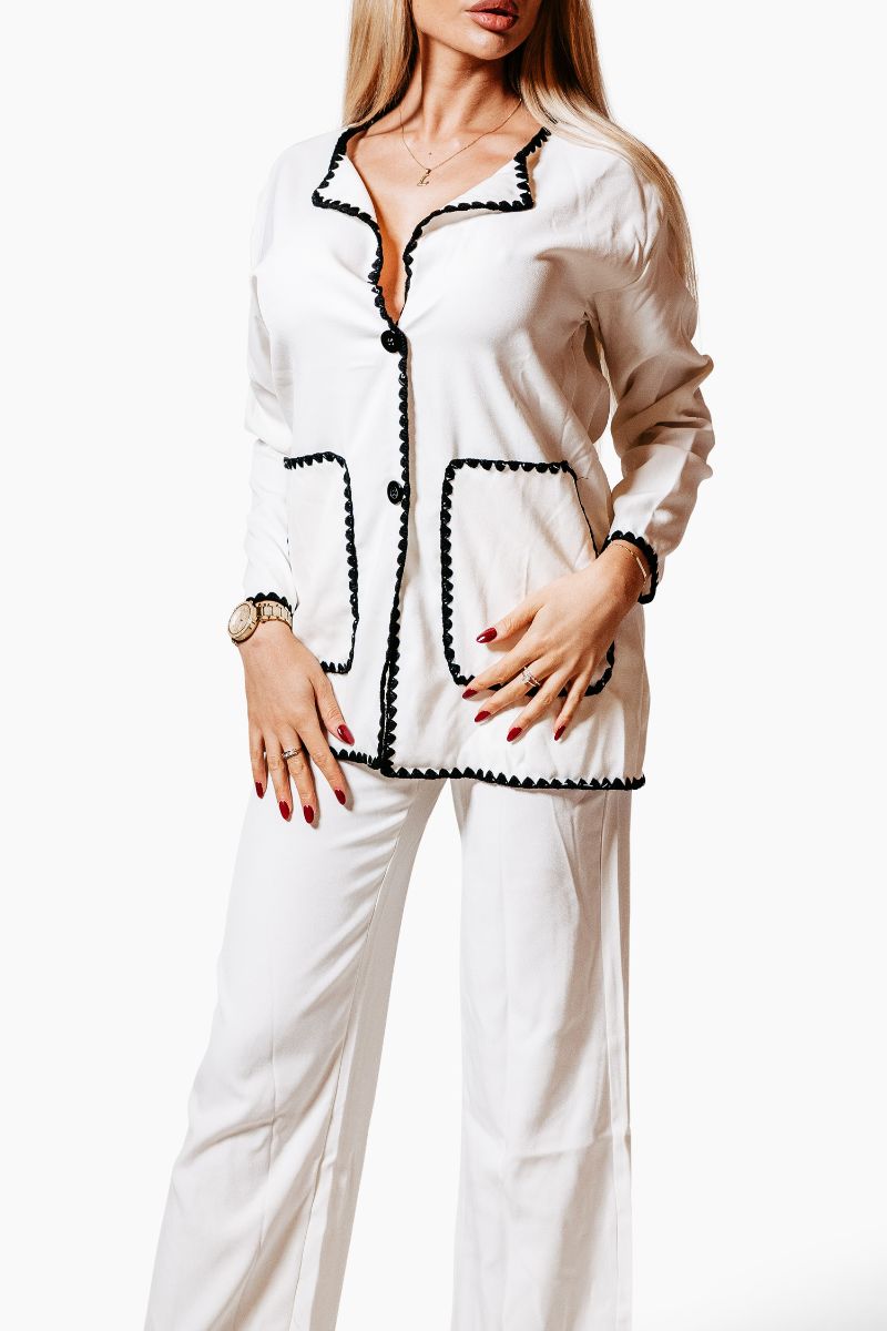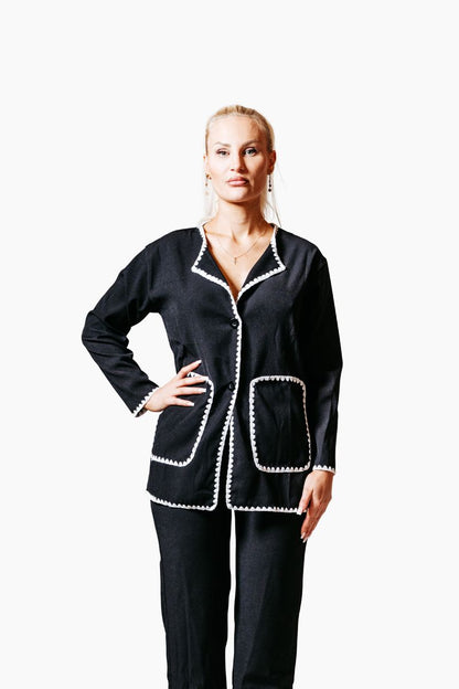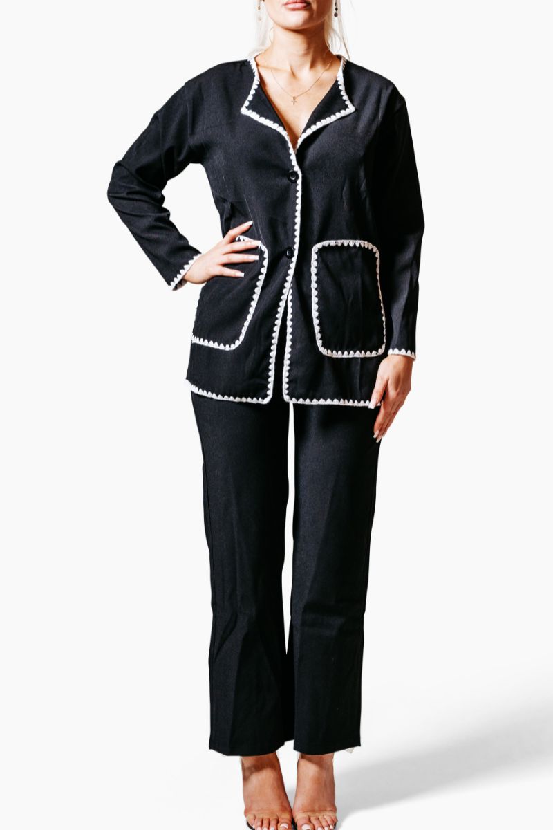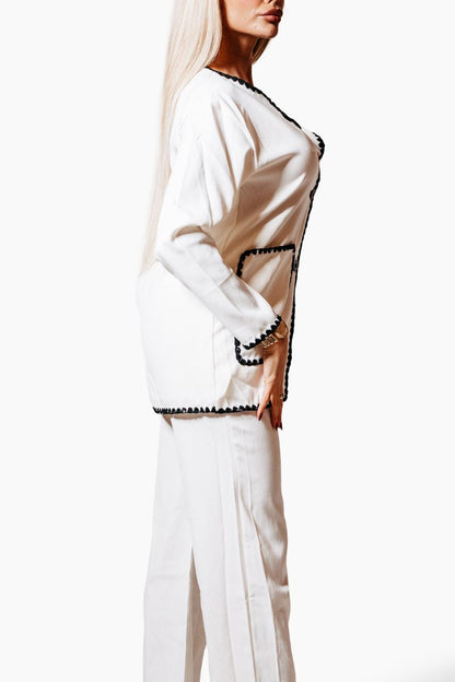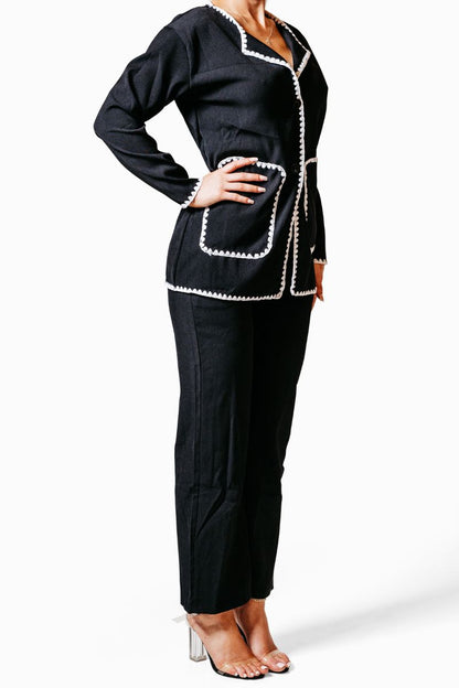 Das zweiteilige Set Elle vereint Eleganz und Komfort und ist somit ein Must-have für jede Garderobe. Dieses elegante Set besteht aus einem schicken, maßgeschneiderten Langarm-Oberteil und einer passenden, locker sitzenden Hose und sorgt dafür, dass Sie den ganzen Tag mühelos elegant aussehen.