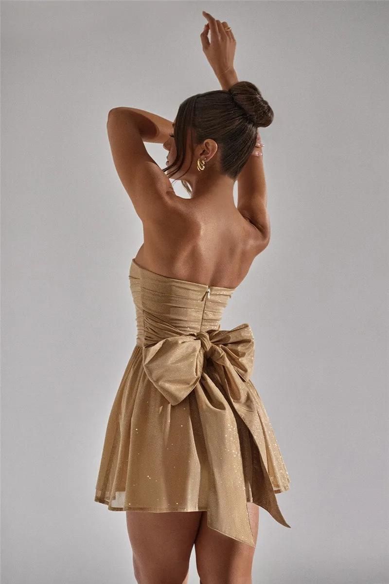 Die elegante, übergroße Schleife mit Reißverschluss auf der Rückseite verleiht dem Kleid eine einzigartige, feminine Note und rundet den Look mit raffiniertem Charme ab.