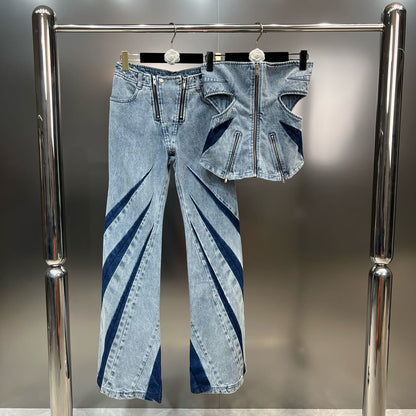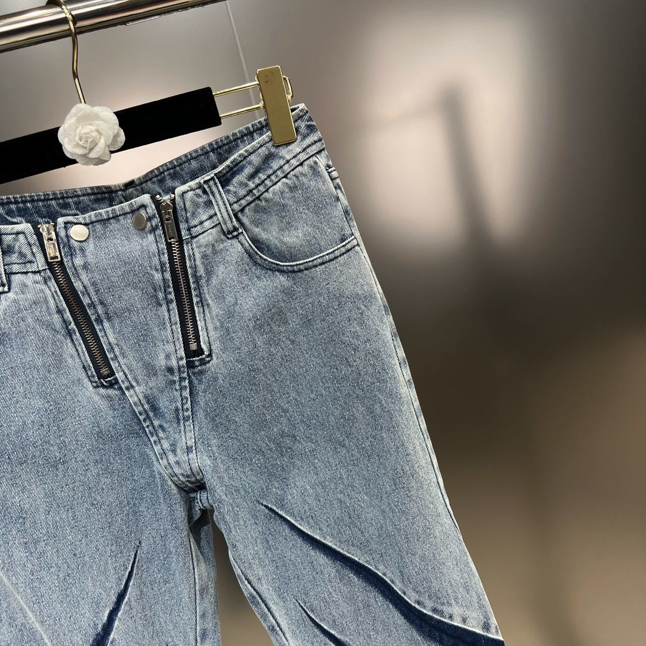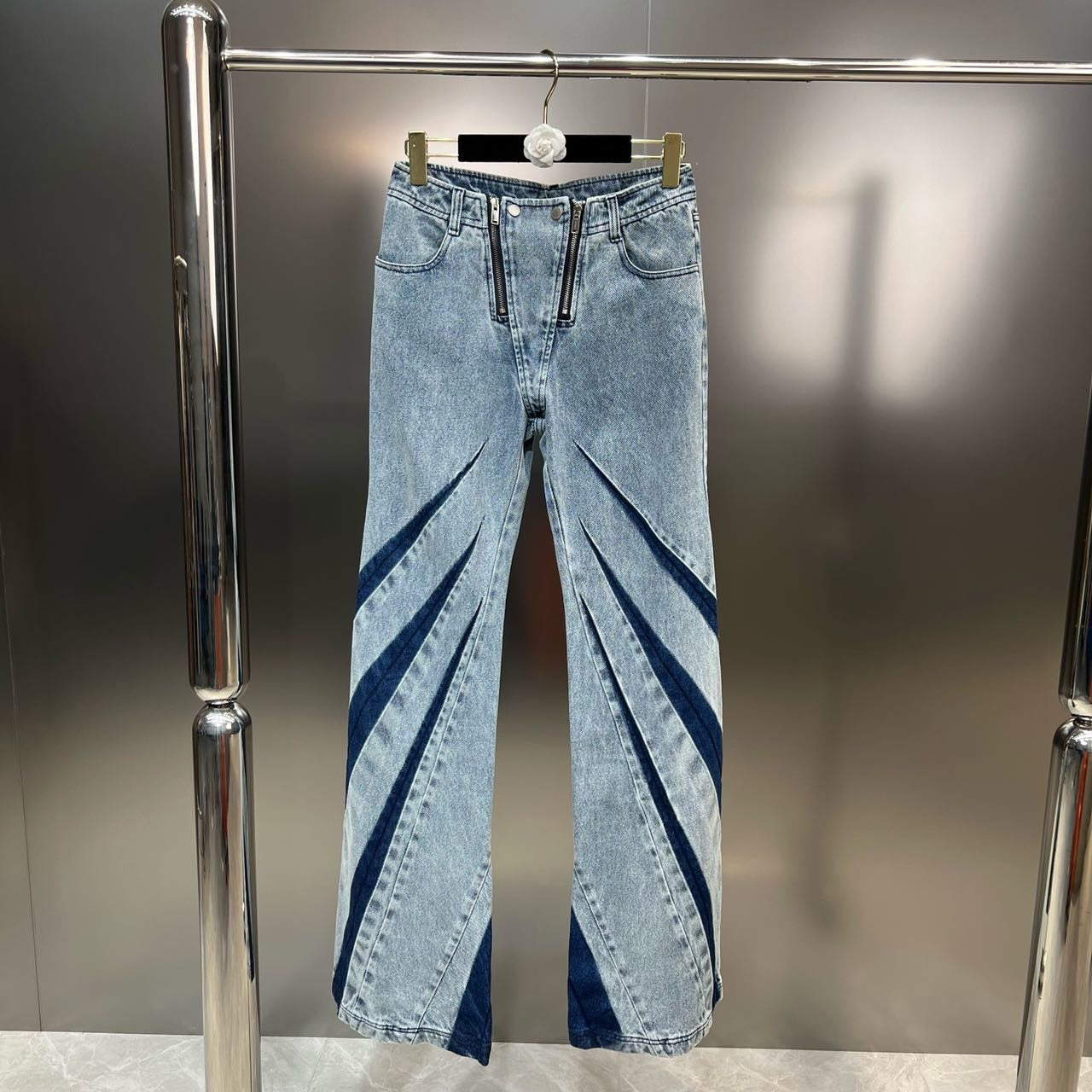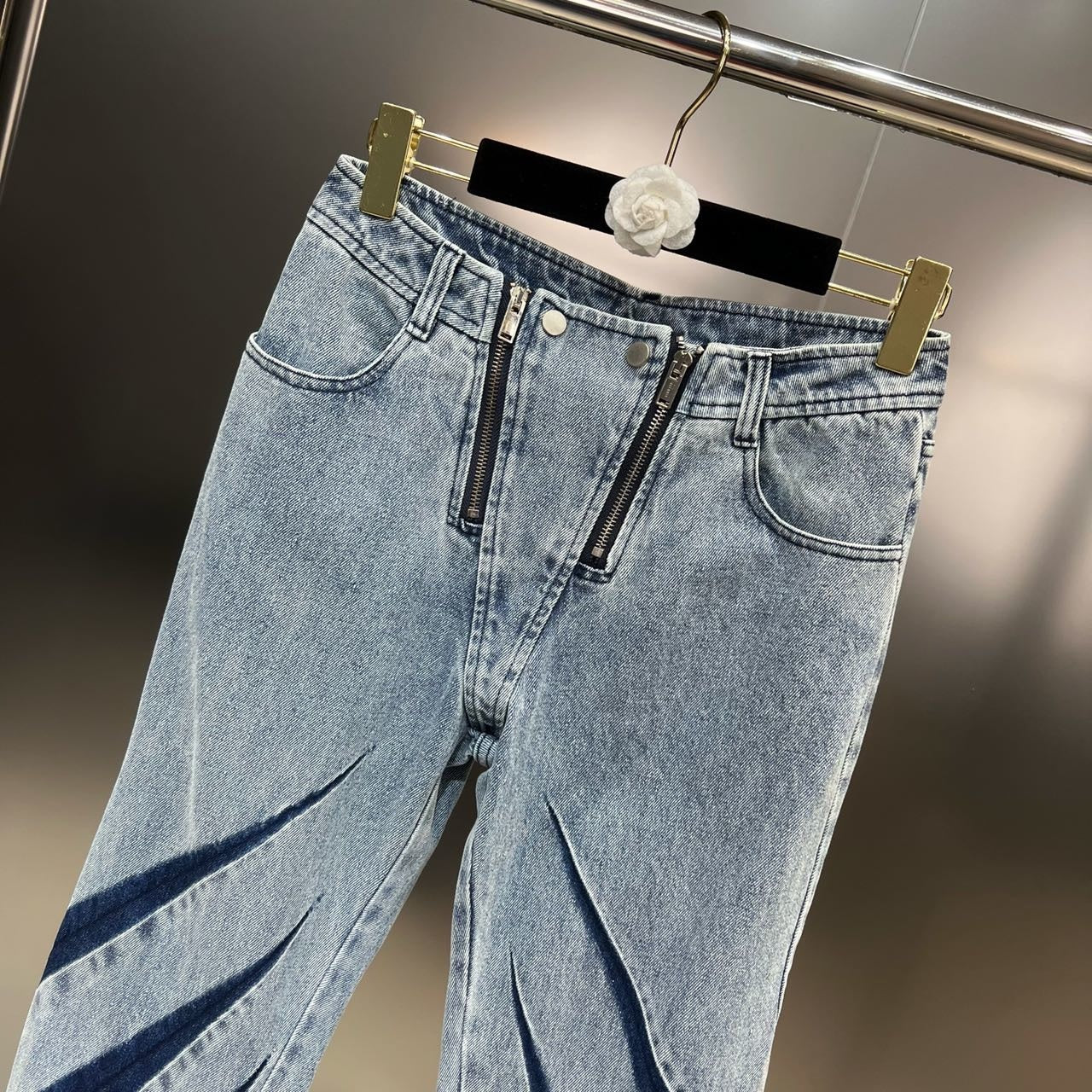 Werten Sie Ihre Jeans-Kollektion mit unserer Flare-Jeans mit Abnähereinsatz und Doppelreißverschluss auf. Mit ihrem einzigartigen Doppelreißverschluss-Design bietet diese Jeans sowohl Stil als auch Funktionalität. Der Abnähereinsatz sorgt für eine schmeichelhafte und bequeme Passform und macht diese Jeans zu einem Must-have für alle modebewussten Frauen. Werten Sie Ihre Garderobe mit unserer Flare-Jeans mit Doppelreißverschluss auf.
