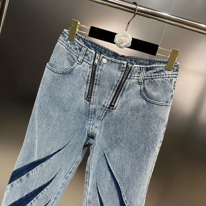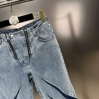 Schlagjeans mit Abnähern und Doppelreißverschluss