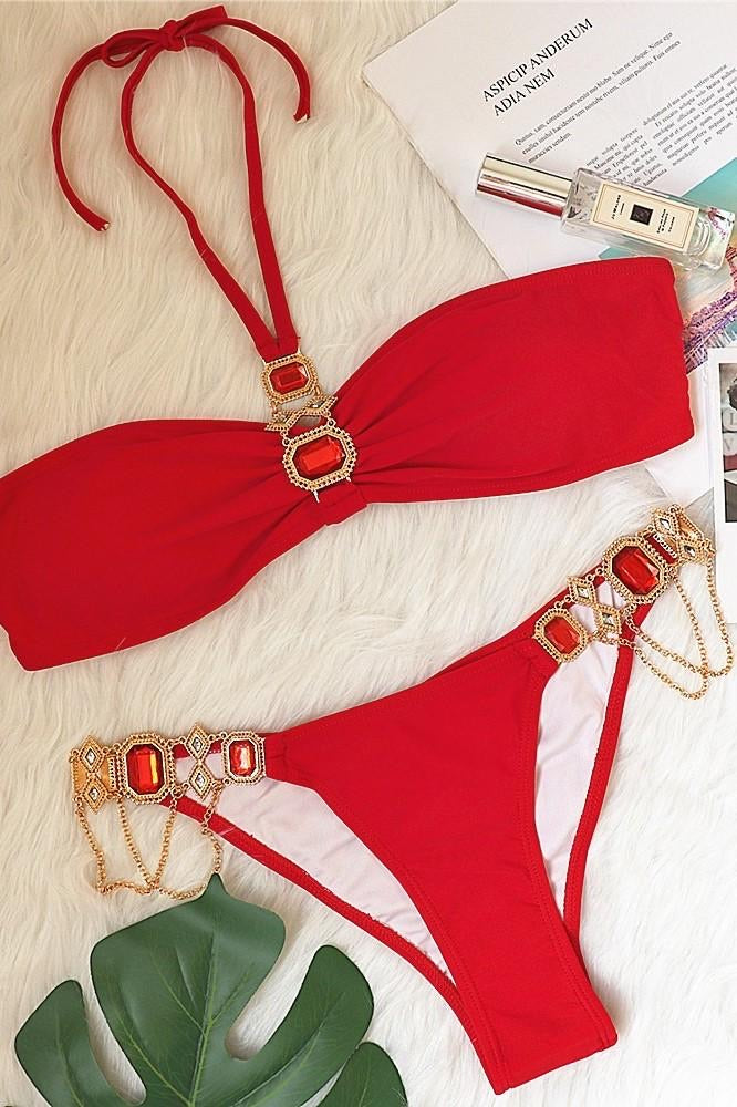 Erzielen Sie den ultimativen Strandlook mit unserem Dynasty Bikini-Set . Dieses luxuriöse, sexy und glamouröse Set ist perfekt für alle, die auffallen möchten. Hergestellt aus hochwertigen Materialien bietet es Stil und Komfort. Werten Sie Ihre Bademode mit diesem Must-have-Set auf.