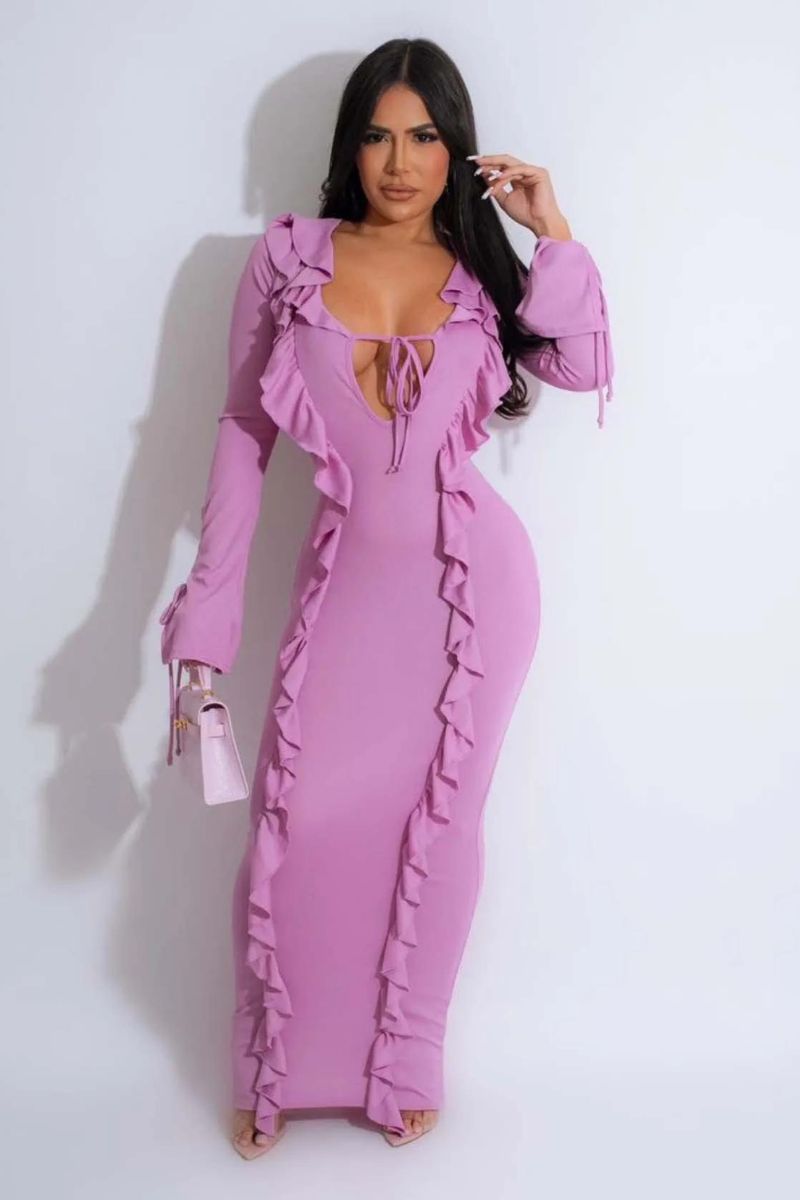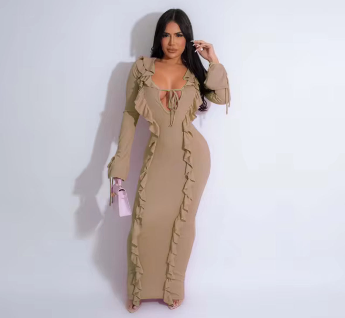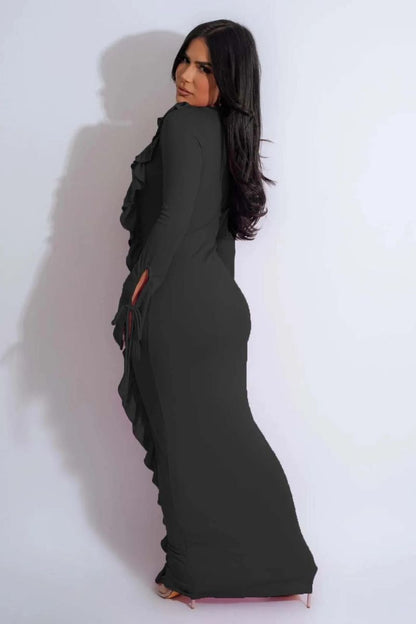 BODYCON RUFFLED JELLYFISH LONG SLEEVE DRESS