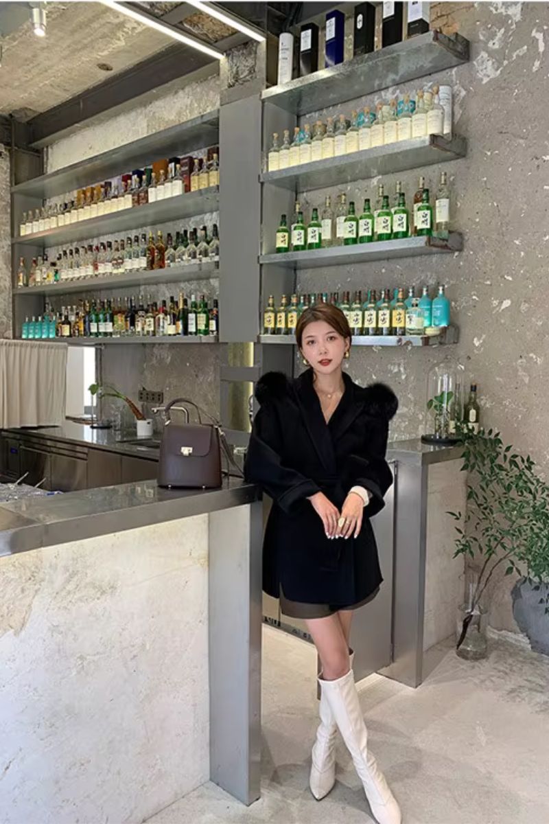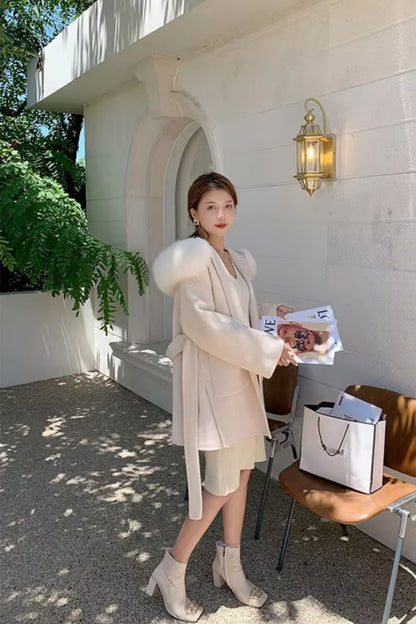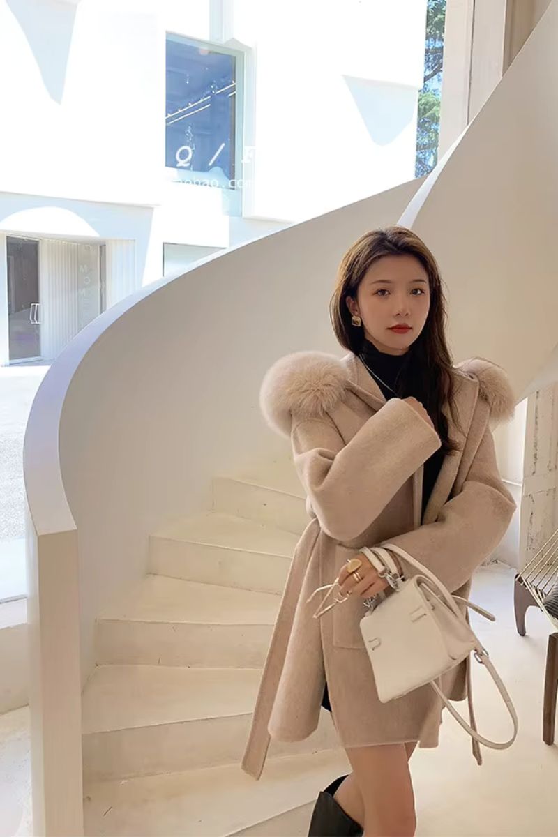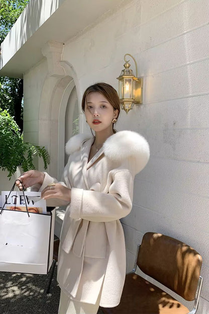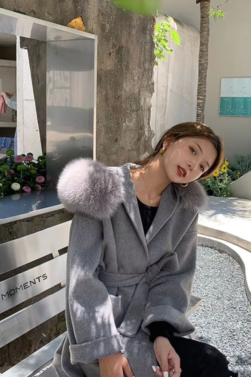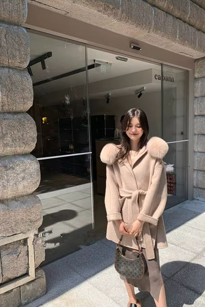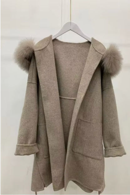 DAYMIS Cashmere Wool Jacket With Fur Trim Hood