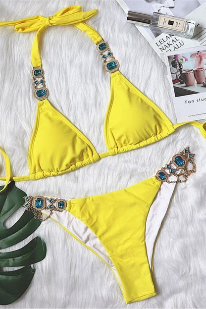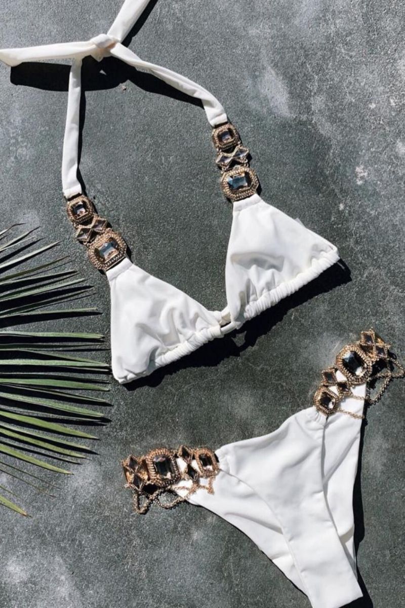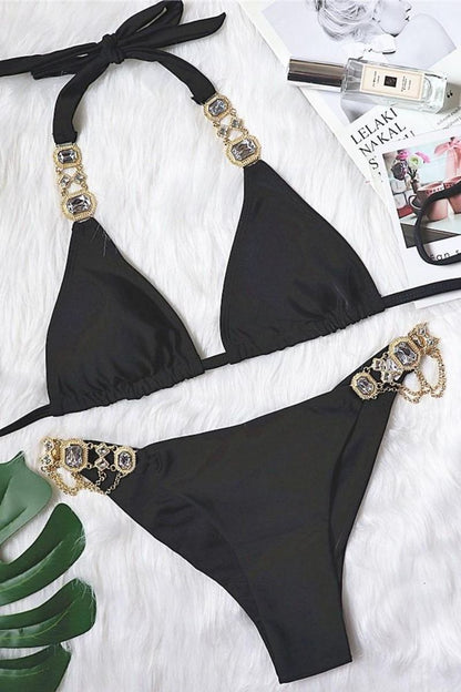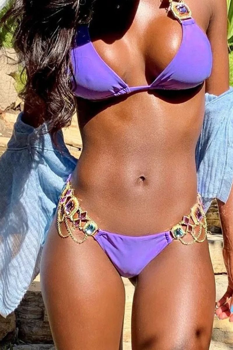 Introducing the Kiki Bikini Set, the perfect combination of boujee, sexy, and glamorous. Elevate your beach look with this stylish set that will make you feel confident and chic. With its luxurious design, this bikini set is a must-have for any fashion-forward individual.