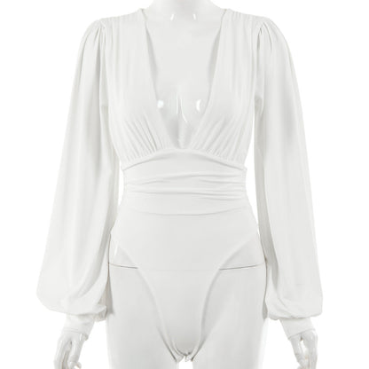 Experience the ultimate combination of style and comfort with the Sasy Body bodysuit. The deep v-neck adds a touch of sophistication, while the seamless design provides a smooth, flattering fit. Made with high-quality materials, this bodysuit is a must-have in any fashionable wardrobe.
