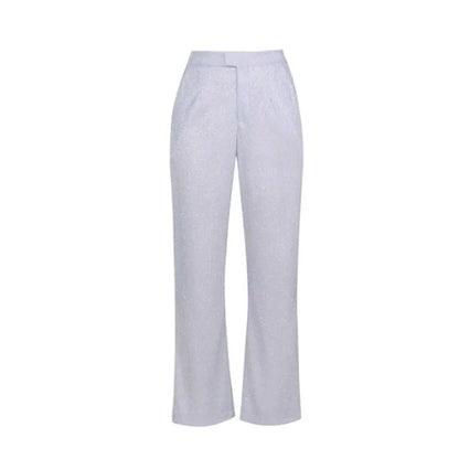 The blazer is the showpiece of this glittering suit. With its tailored fit and shimmering finish, the blazer gives a chic and glamorous look. Whether you are going to a party or have a special occasion, the blazer will add a touch of elegance to your look.